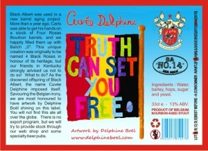 …men Struise har valt ett annorlunda grepp för att berätta för folk om vad som hänt men ändå inte. Barnet har växt upp och heter Delephine Boël. När Struise för några år tänkte döpa en bourbonekfatslagrad Black Albert till ‘4 Black Roses’ blev de ombedda av bourbondestilleriet att inte göra det. Eftersom ölen är en ‘bastard’ och ryktet om Delephine florerade tog de kontakt med henne och bad att hon skulle göra etiketten. Så fick det bli och ölen fick även bära hennes namn. Huruvida detta är sant eller inte låter jag vara osagt men ölen är en fabulöst god…