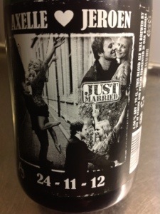 Sist i raden är en bröllopsöl bryggd av brudgummen själv på Struise och som ni ser på fotot är den ung! Paret, som båda jobbar på Struise, gifte sig i november och under ett år har Jeroen hållt på med ölen eftersom han valde att ekfatslagra den på bourbonfat. Det som är verkligt udda här är att han har bryggt en relativt svag fruktöl i grunden och romantiker som han är valde han Axelles favoritfrukt persika. Den ser vi fram emot!