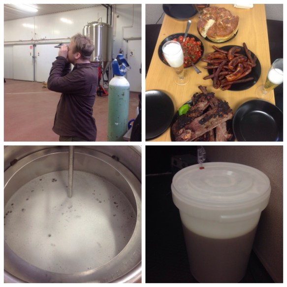 Gustaf stod som vanligt för bryggarmaten som tillreddes på bryggeriets monstergrill. Oxrevben, merguez och chorizo med tomatsalsa och schysst bröd. Det gick verkligen ingen nöd på oss och nu är det bara fem-sex veckors väntan innan vi får smaka hur resultatet blir.
