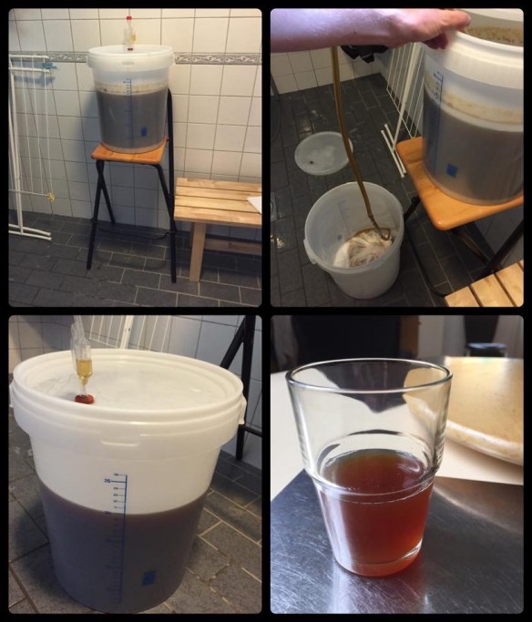 Ölen jag var med och bryggde härom veckan har blivit omplacerad. Trots debaclet i slutet av bryggningen verkar allt vara i sin ordning och enligt en av bryggarnas utlåtande är sötvörten just söt, god och barrig vilket låter betryggande.