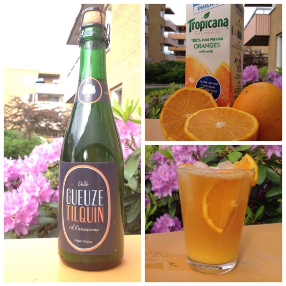 Självklart innehåller denna specialvariant av Mimosa belgisk öl istället för champagne och då passar det givetvis extra bra med en gueuze. Inga krusiduller och enkelt som 1-2-3. Ta ett highball-glas med is, fyll till 60% med apelsinsinjuice och 40% med en gueuze av eget tycke och smak. Superläskande i värmen och över förväntan gott. Emellertid undrar jag om inte gueuzen hade varit ännu godare i sin ensamhet men det låter jag vara osagt… Trevlig lördagskväll!
