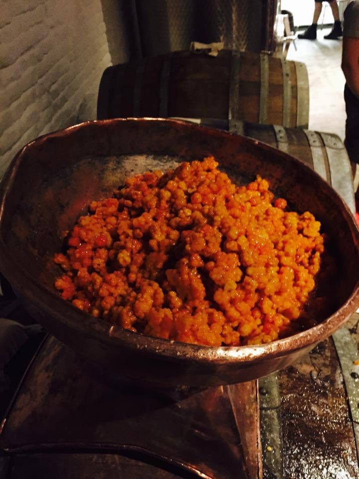 Tunnan med lambic är enligt utsago handplockad av Jean van Roy och är i excellent kondition. Till denna har man pressat in 300 kg jämtländska och tokfärska (plockade måndagen den 10/8!!) hjortron. Är tanken att det ska vara lika mycket bär/liter som sist kommer det finnas 1000 liter (minus lambicänglarnas del) Soleil de Minuit när ölen är klar. Härligt, härligt…