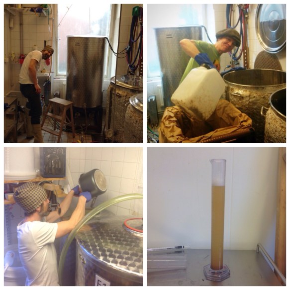 Möjligen är detta det minsta av de komersiella bryggerierna jag någonsin besökt så rundvandringen går snabbt. Processen med vår grisette går också smärtfritt, det nyskapade receptet prickas av och dagen passerar i stilla mak. Eftersom denna ölstil som föddes bland gruv- och kolarbetare i Vallonien, mer eller mindre är utdöd lämnar det rum för egna tolkningar och konstnärlig frihet. I vårt fall har vi kompromissat lite på var sina håll men jag är nöjd med slutrecepetet och hoppas att det levererar när produkten väl finns till servering.