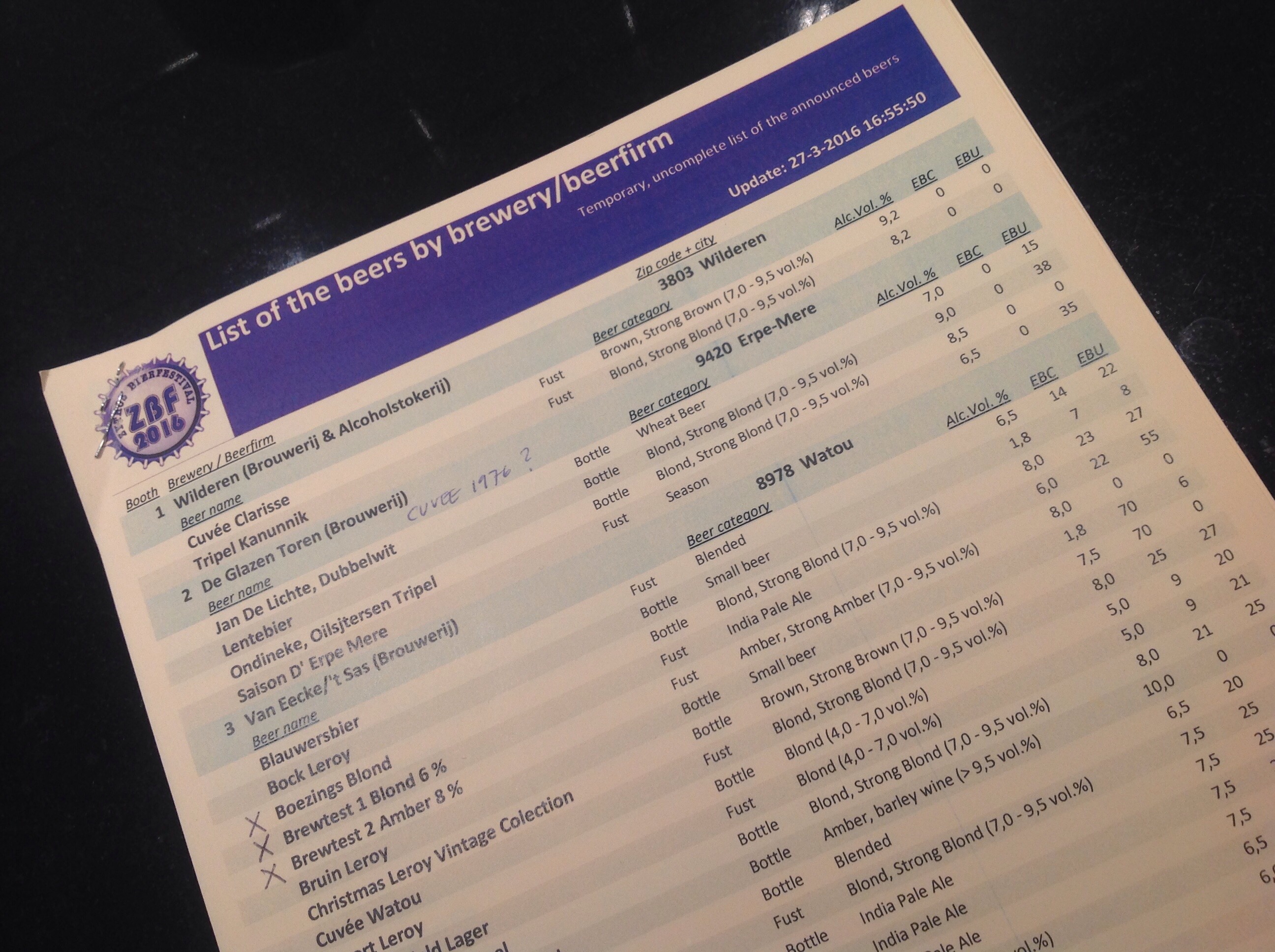 När jag senare idag kliver in på Brabanthal för att besöka min nionde Zythosfestival har jag inte mindre än 128 stycken nya öl att inmundiga enligt senaste listan. Puh!