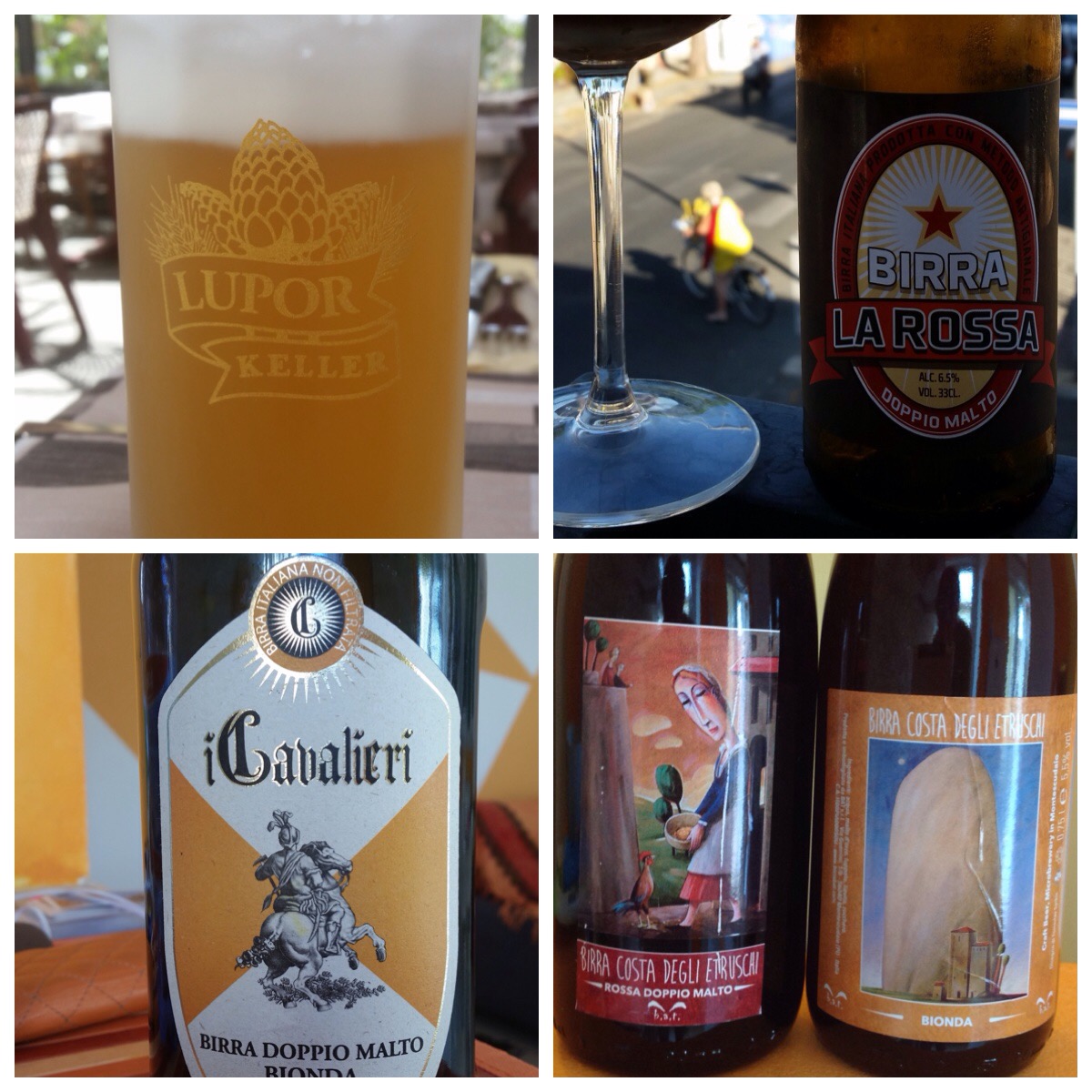…men tyvärr föll inte så många mig i smaken. Lite för fegt, lite för tråkigt och lite för enahanda. Förutom några få undantag kan man klassa in den italienska mikrovågen i törstsläckande slätstrukna veteöl, snälla blonda runt 5%, något kraftigare ambréer runt 7%.