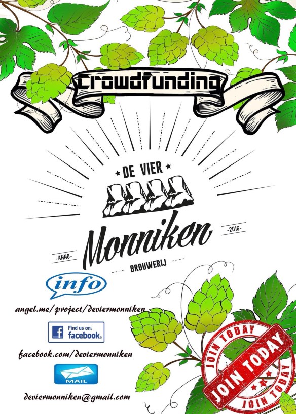 Den 1:a juli i år (2016) drog fyra män igång ett av Belgiens färskaste bryggeri och de döpte det till De Vier Monniken (de fyra munkarna). Bryggeriet är beläget i den vackra kullerstensstaden Brygge men eftersom det är en dyr historia att starta ett bryggeri har de dragit igång en gräsrotsfinansiering.