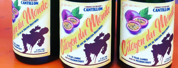 Till jubileum nummer två, vilket är Cantillons amerikanska distributör Shelton Brothers 20-årsjubileum, har Jean Van Roy komponerat en ny fruktlambic. Denna gång har Cantillon blandat i passionsfrukt i en två-årig lambic och brygden har fått namnet Citoyen du Monde (världsmedborgare). Namnet är hämtat från filmen Casablanca som är Dan och Tessa Sheltons favoritfilm. Jag ser tyvärr inte hur jag ska komma över denna men förhoppningsvis löser det sig på något sätt…