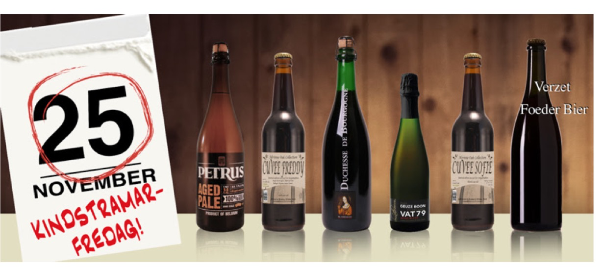 Lådan innehåller tolv flaskor med två exemplar av fem olika Oud Bruins och en Lambic:
