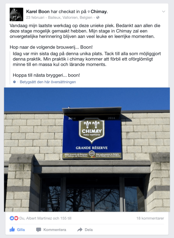 En betydande del i detta unika samarbete står Frank Boons son Karel Boon för i och med att han gjorde sin sista bryggeripraktik hos munkarna. Som jag har förstått det var det då fröet till denna ej ännu namngivna brygd såddes. Lansering förväntas bli i slutet av året eller möjligtvis början på 2018. Jag håller ögonen öppna och håller er uppdaterade.