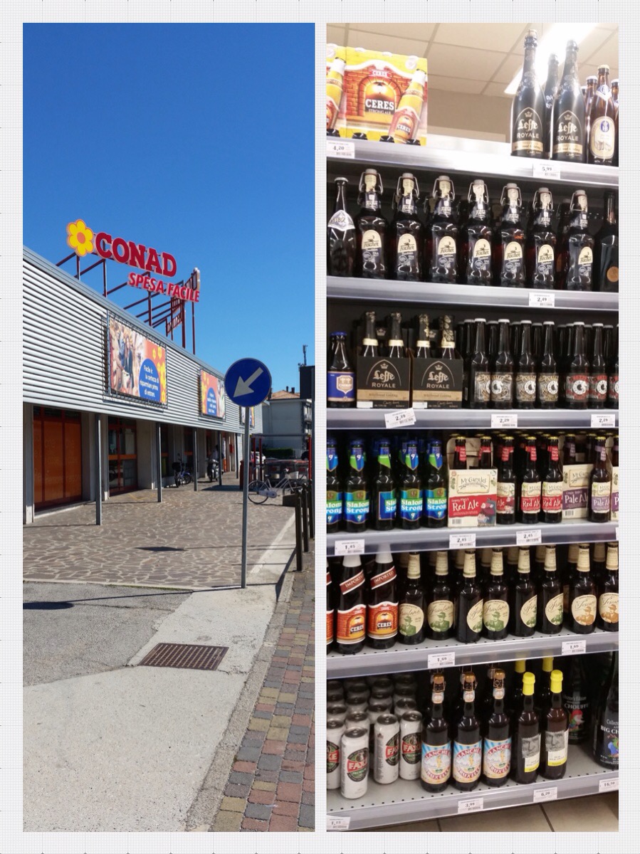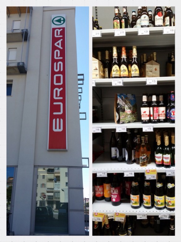 Affärskedjan Conad har ofta levererat under mina tidigare besök i Italien så jag var vid gott mod när jag äntrade butiken. Åter igen visade det sig att de gick vinnande ur denna bataljen om än inte lika stor som jag på förhand anat. Conad stoltserade med ett tjugotal belgare plus att deras utbud av ‘utländsk’ öl var större än på föregående butiker. Glädjande nog hade de både Orval, Chimay Bleue, Blanche de Bruxelles samt Big Chouffe. Här fyllde jag väskan med diverse öl och traskade sedan glad och förnöjd hemåt i brännheta eftermiddagssolen.