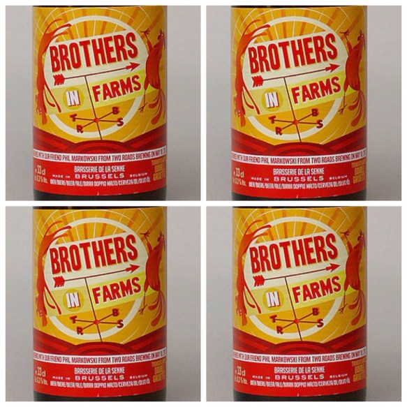 Den sistnämnda brygden har De la Senne gjort tillsammans med bryggeriet Two Roads från Connecticut eller snarare så är det ett samarbete mellan bryggarna Yvan de Baets och Phil Markowski. Dessa två ytterst kompetenta herrar möttes 2003 när Phil höll på att skriva boken ”Farmhouse Ales” som handlar om ölstilarna Saison, Biere de Garde, Farmhouse Ales och Grisette. Få vet mer om dessa stilar än Yvan och Phil vilket avspeglar sig i Brothers in Farms vilket placeras in i facket Dubbel Grisette. Att mina förväntningar är högt ställda är en underdrift.