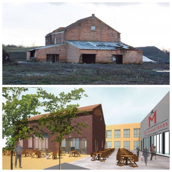 Bilden ovan visar hur ‘lokalen’ (vilket är ett gammalt tegelbruk) ser ut i dagsläget och bilden nedan visar vad det ska bli. Det vankas mycket jobb och en rejäl investering för att Musketeers drömmar ska slå in men jag tvivlar inte att det blir. Projektet kommer att dra igång i mars och det kommande bryggeriet ligger i Sint-Gillis-Waas som är en stad strax norr om Sint Niklaas i Östflandern.