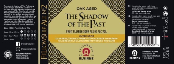 The second chapter of ”The Fellowship of the Ring” is called ‘The Shadows of the Past’. Gandalf explains the true nature of the Ring, how it must be destroyed for the good of all the Free Peoples of the World. No need to destroy this beer. We foraged silverberries, seabuckthorn and grew forched rhubarb and added them in May (2018) to a Chateau Mouline (Bordeaux/Medoc) red wine barrel. This beer aged for 20 months in this third time used French oak barrel. (679 bottles)