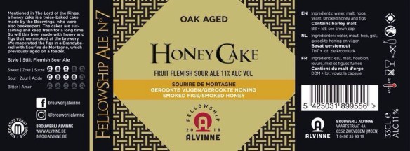 Mentioned in ”The Lord of the Rings”, a honey cake is a twice-baked cake made by the Beornings, who were also the beekepers. The cake are sustaining and keep fresh for a long time. So will this beer made with honey and figs that we smoked at the brewery. We macerated the figs in a Brandybarrel with Sour’ire the Mortagne, which previously aged on a foeder. (Yet to be bottled)