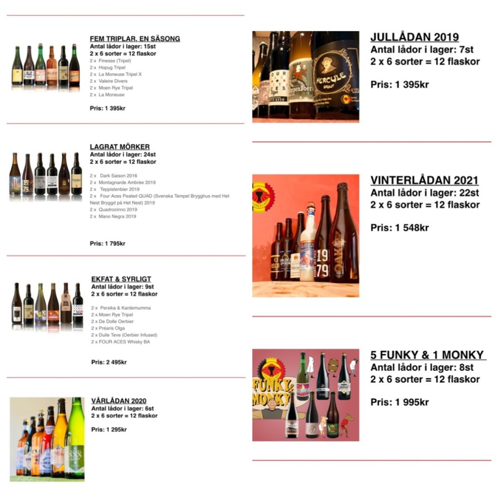 Det finns totalt sju olika sorters lådor, som ni kan se här ovan, där vissa är mixade produkter från olika säsonger och vissa är rena.