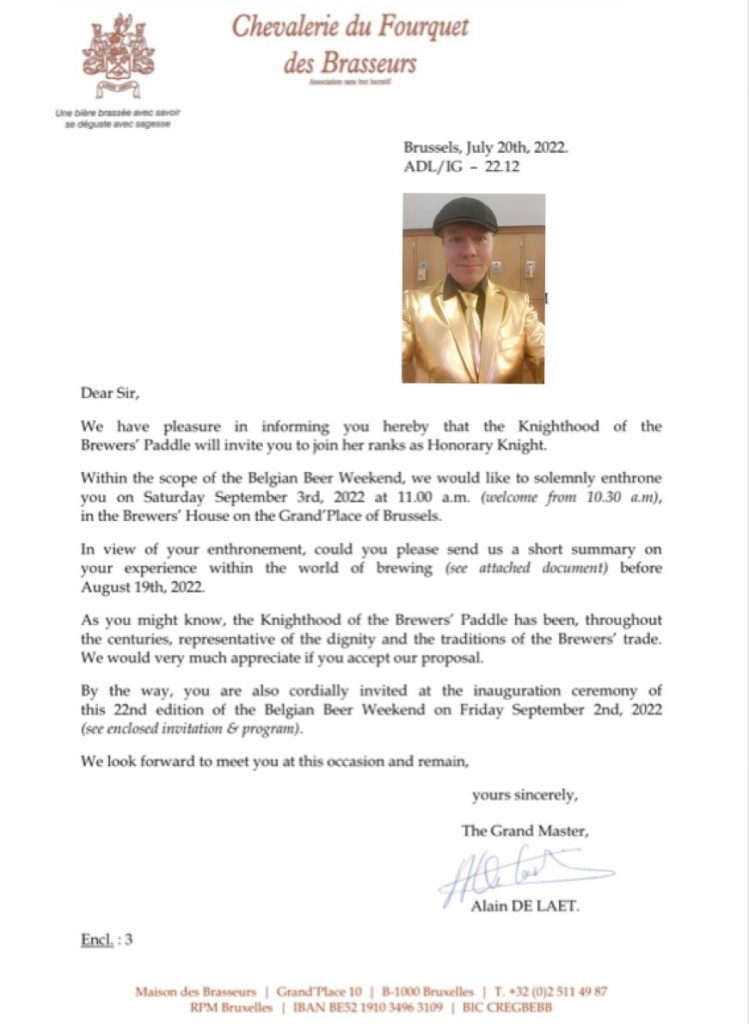 Dock är det så att oavsett vad som än händer denna höst, vilka brygder jag än lyfter fram, vilka bryggare som än kommer och hälsar på finns det inget som toppar min riddardubbning i Bryssel!