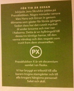 Första ölen vi gjorde tillsammans var den förra jubileumsölen ‘Pressklubben 10 Anniversary Ale’ som vi tog fram i anslutning till Pressklubbens tioårsjubileum.