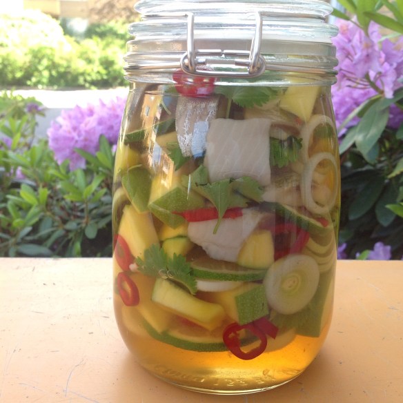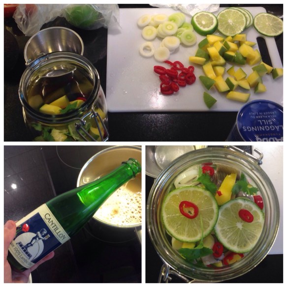 Häll chilin och lagen i några tätslutande burkar och kyl. Kan du inte hålla dig går den inlagda chilin utmärkt att äta ganska omgående men jag tänker låta min stå ett tag. Hoppas det smakar…