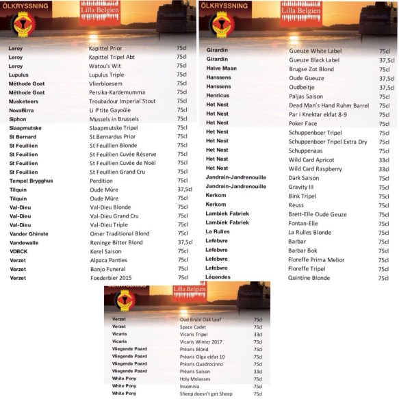 Många av er har redan sett och beskådat Belgoklubbens ölbutik Lilla Belgiens utbud på den kommande båtresan men det tål att upprepas. Det är en synnerligen god uppställning och ett sällan skådat sortiment som erbjuds alla resenärer på denna festliga resa.