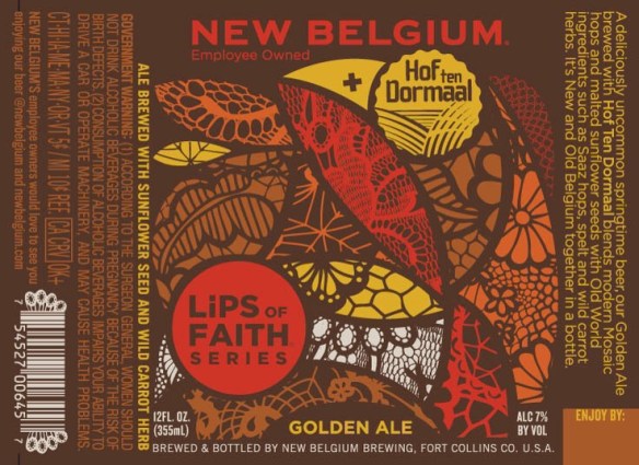 Bland de ‘belgarna’ som har utländskt inflytande ser vi New Belgium och Hof ten Dormaals samarbetsöl Golden Ale. Denna brygd var en av fyra samarbetsöl med belgiska bryggerier amerikanarna gjorde förra året för att celebrera deras 25 årsjubileum. Trots att ölen innehåller morotsörter och solrosfrön är den ren och snygg.