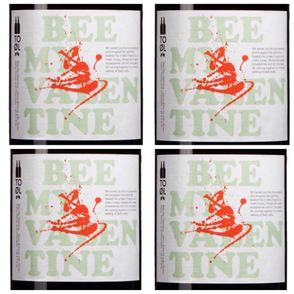 Sist ut bland ölen med belgoanknyning är To Øl och deras Bee My Valentine. En öl tänkt att ersätta alla andra gåvor på Alla-Hjärtansdag. Kul tanke och jag ser fram emot att prova denna mäktiga stout som innehåller både honung, jordgubbar och choklad. Man kan tycka vad man vill om dessa två unga danska herrar men rädda för att prova udda ingredienser är de inte…