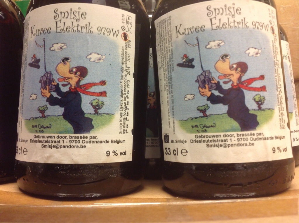 Serietecknandet går igen i många av de belgiska öletiketterna. En figur som dyker upp både här och där är Poje. Här syns han på en raritet från Cantillon men även Silly och Vapeur har använt den fryntlige, småpackade karaktären.