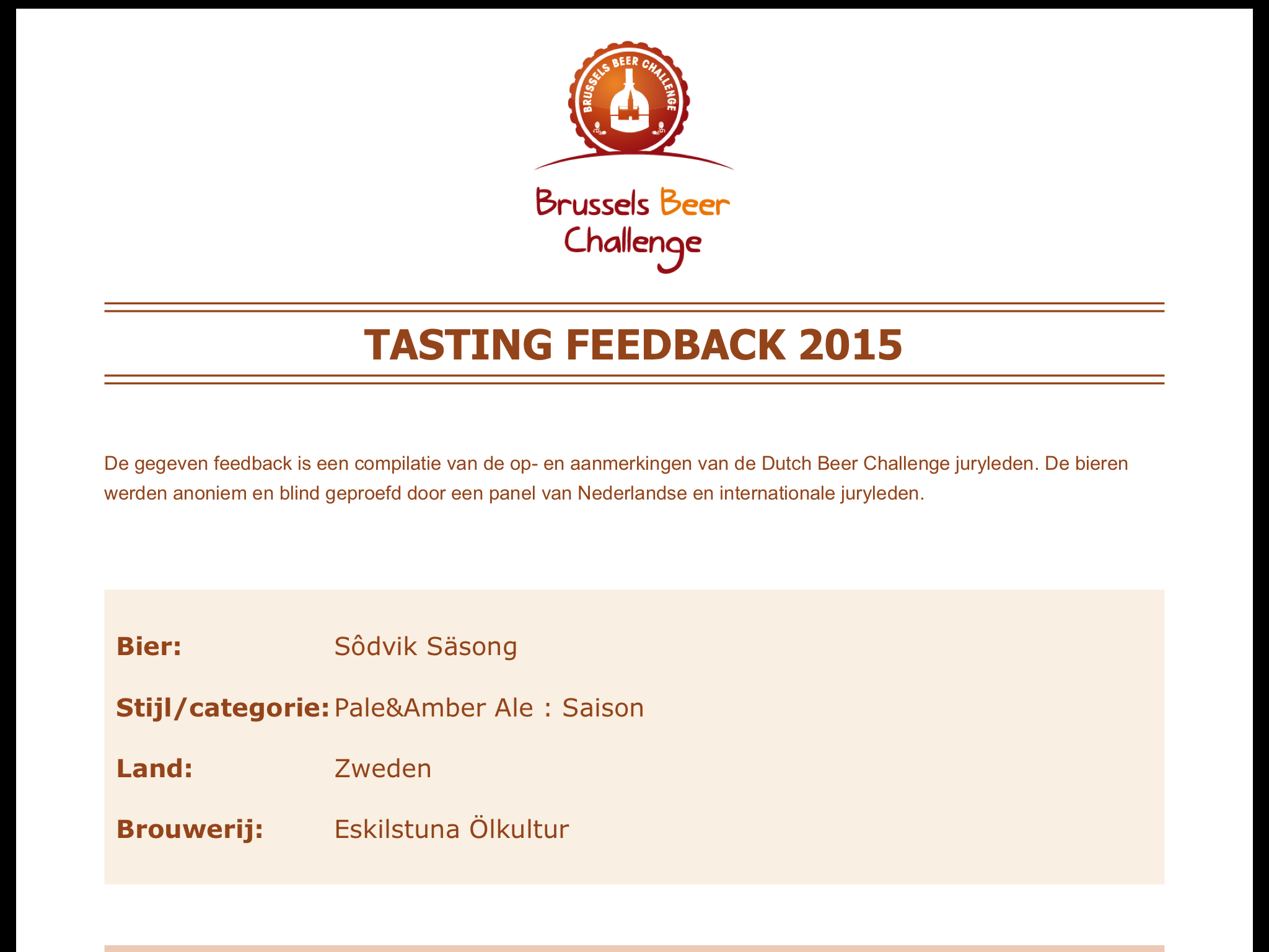 Nu har jag fått domarnas utlåtande kring mina två tävlande öl under årets Brussels Beer Challenge.