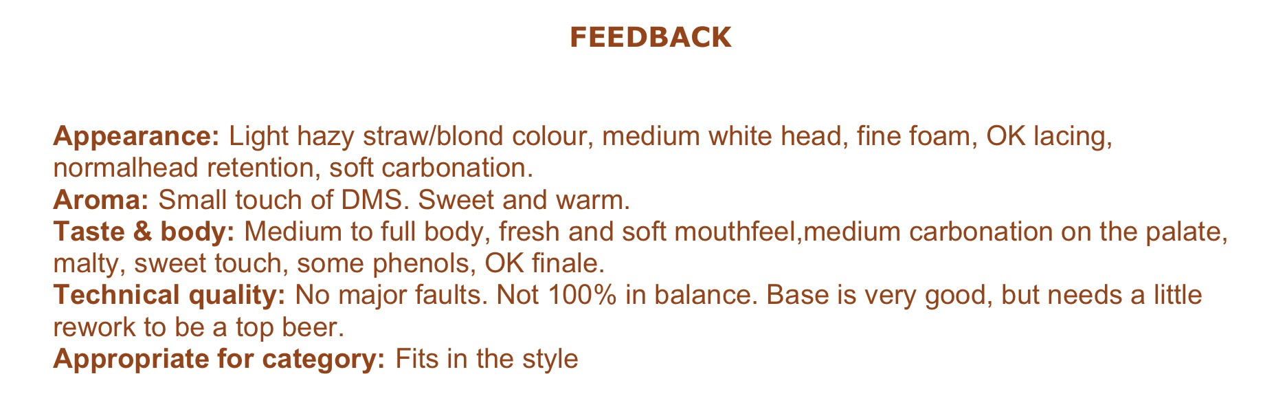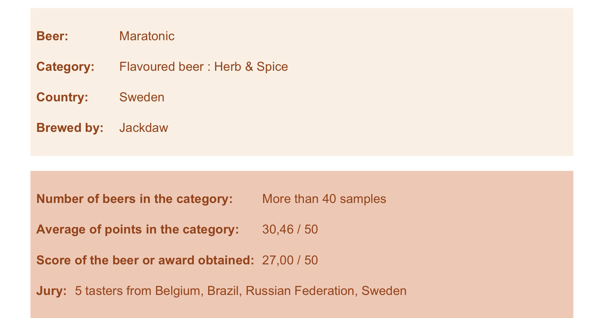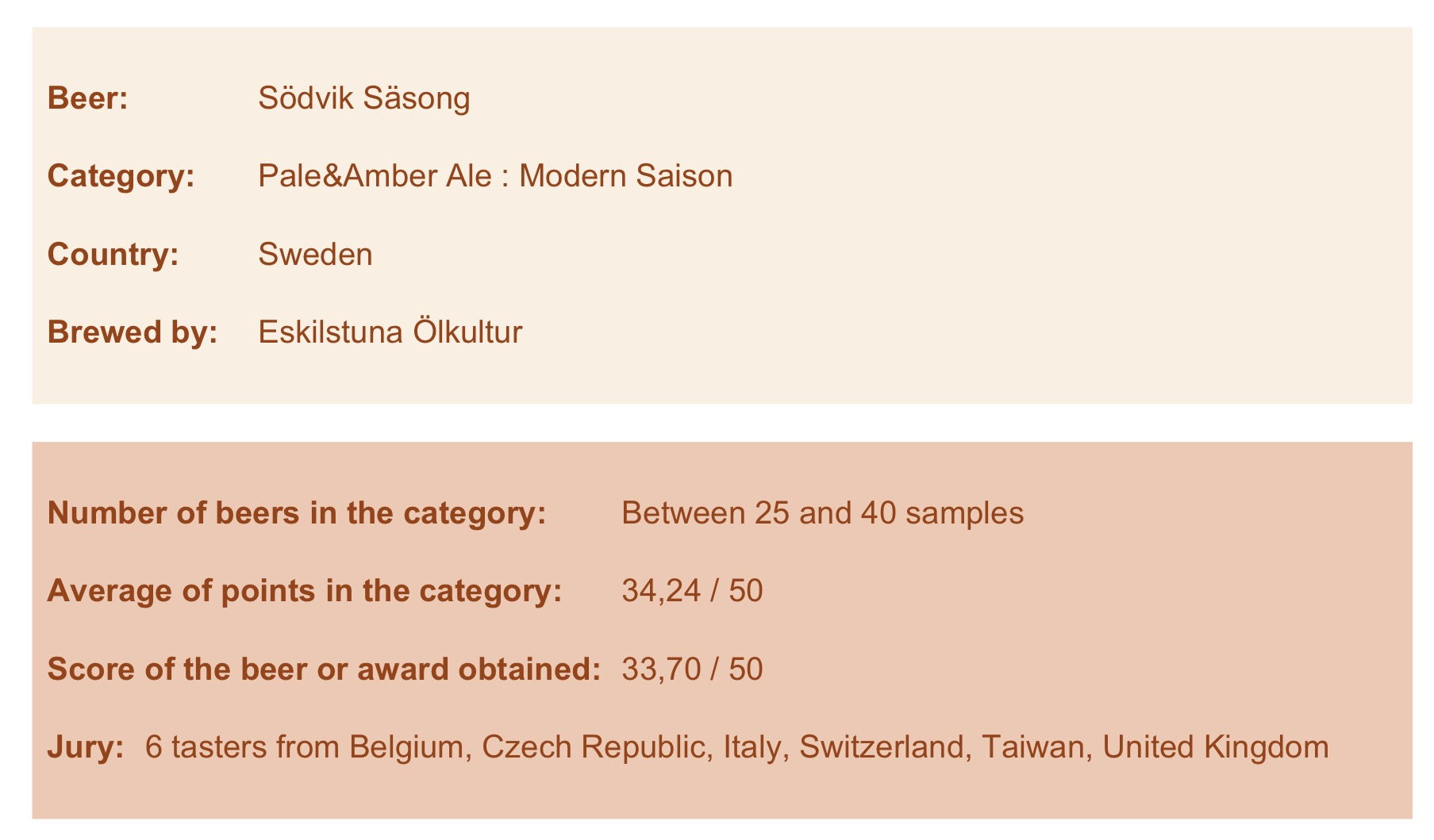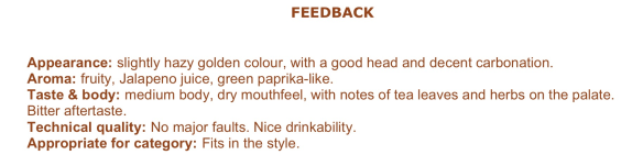 När man läser domarutlåtandet ser man att de helt missat tonicen och ännu mer kaffetonerna som jag tycker är väldigt märkbara. I övrigt är jag mycket nöjd med deras bedömning och en parantes i sammanhanget är att den svenska representanten Andreas Fält var i denna domarpanelen. Kul.