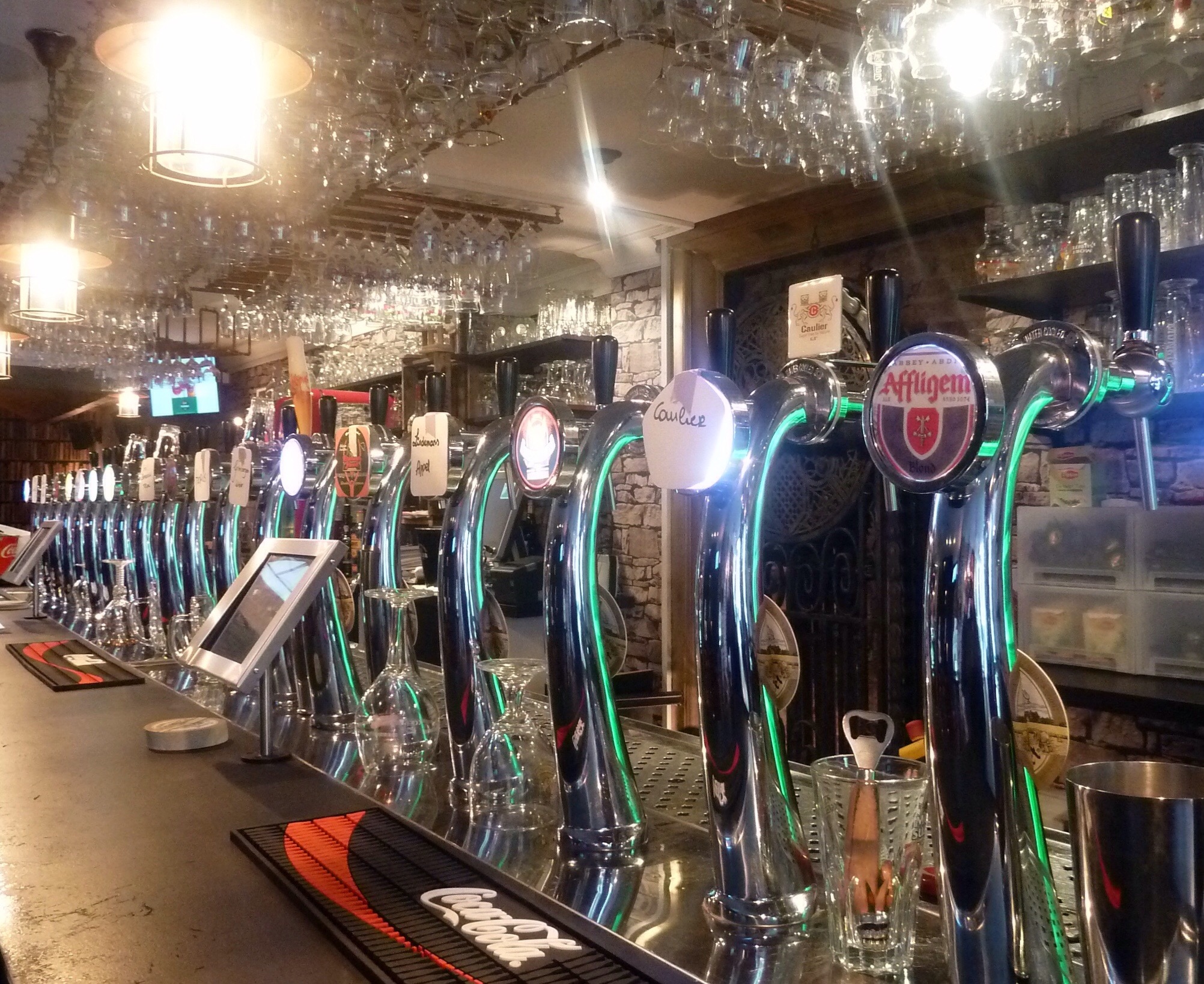 Enligt diverse källor har krogen ett ölutbud mellan 800 och 3000 olika sorter och det är mestadels belgiska produkter. Oavsett vilket är det mer än hyfsat. Omdömena om huruvida ölen på menyn finns eller inte varierar något oerhört, så även servicen och väntetiderna. Emellertid verkar det som min själsfrände äger stället, för det är många som klagar på hans dryghet och arrogans men i samma mening berömmer honom för hans kunskap.