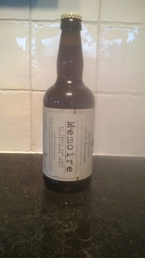 Vidare så är det dags att jaga, för att senare avnjuta, Dochter van de Korenaars ‘nya’ öl Memoire #1. Denna produkt är en skapelse som består av en blandning mellan två av bryggeriets produkter som hittades av en slump tidigare i höstas. Båda dessa öl (Finesse och L’Ensemble) hade vilat i över ett år på whiskyfat när tunnorna hittades. Efter smakprovning fann bryggaren Ronald Mengerink att de hade utvecklats mycket väl och tog beslutet att blanda dem till den brygden ni ser här ovan.