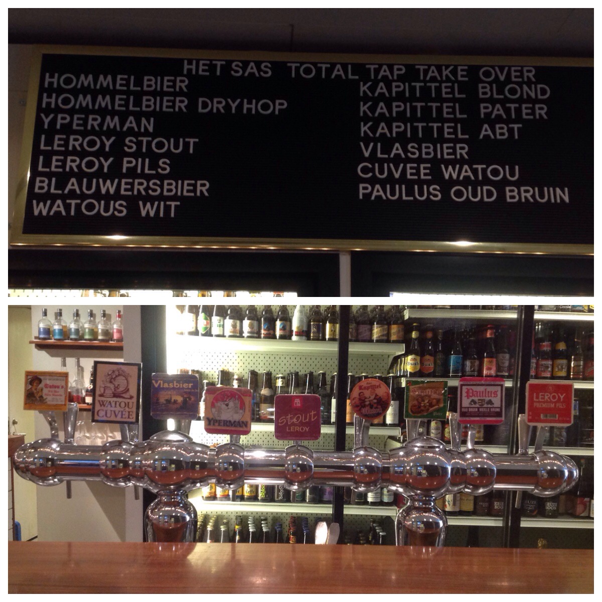 För första gången under krogens 15-åriga livstid kommer ETT bryggeri att ta över ALLA 16 fatöl. Eftersom Het Sas består av två olika bryggerier med två helt olika inriktningar på ölstilar kommer det inte bli enahanda. Den första fraktionen Van Eecke står för de lite mer smakrika och starka klosterölen medan den andra enheten Leroy står för traditionella, mindre alkoholstinna och anrika ölstilar.