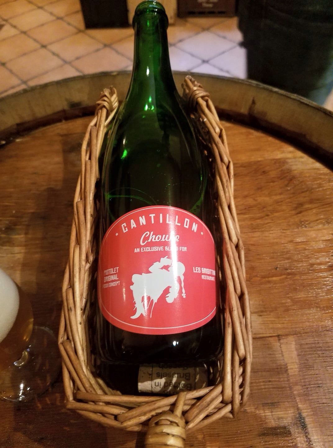 Nåväl, de möjliga varianterna som Jean nämnde för mig var i första hand en lambic som vilat på fat från den tämligen rökiga Bruichladdichägda whiskyn Port Charlotte. Dock var Jean inte riktigt nöjd med hur den var just nu men hade förhoppningar om att det skulle ordna upp sig tills i höst.