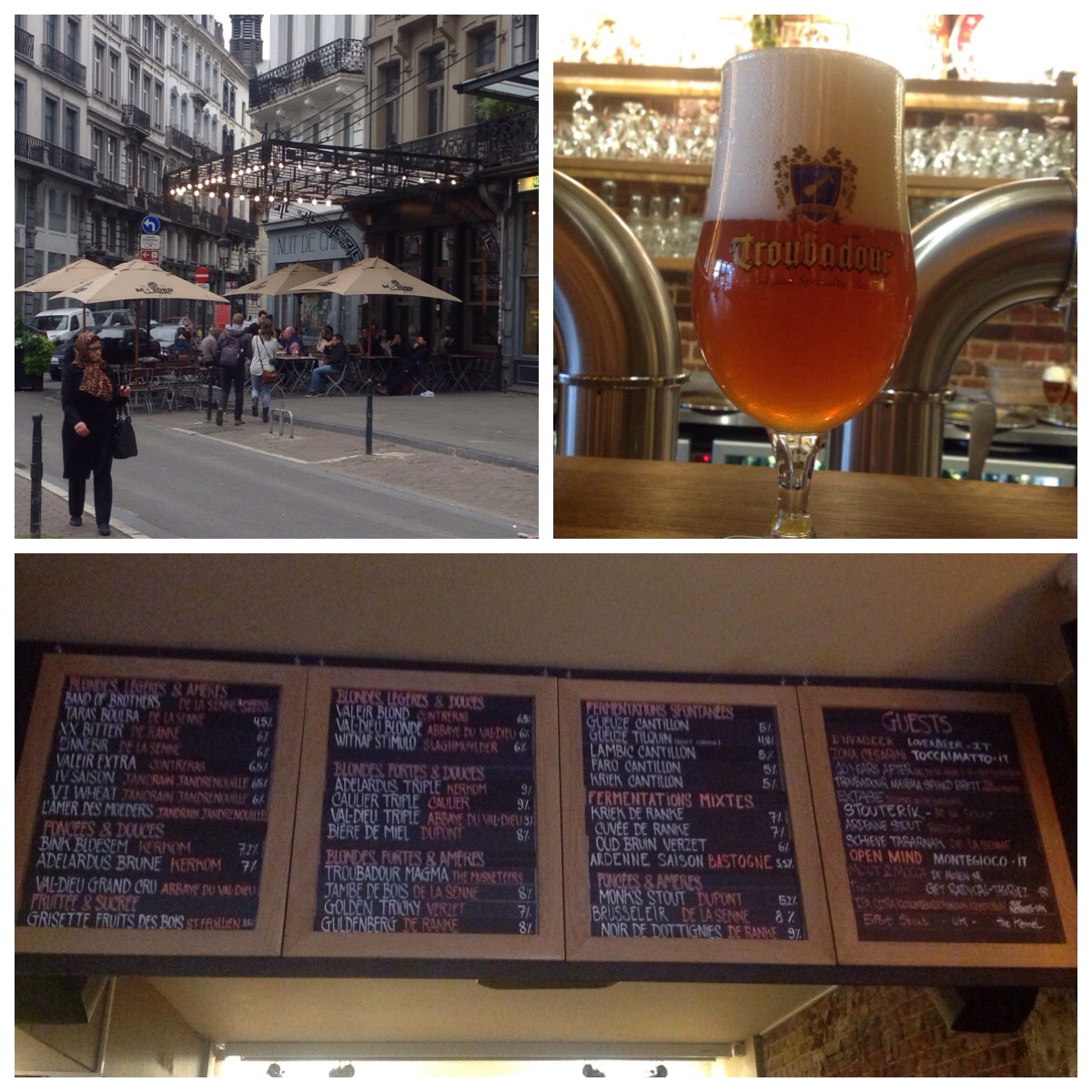16:42 dundrar jag in på Moeder Lambic Fontainas. Deras fatlista är helt makalös och baren är magnifik. Eftersom jag redan är lite sen är det tacksamt att inte möta någon jag känner och att det bara är en öl som jag inte har provat. En försvinnande god Troubadour Magma Special Edition 2015 Triple Spiked Brett hinns med innan jag försvinner vidare mot mitt sista stopp.