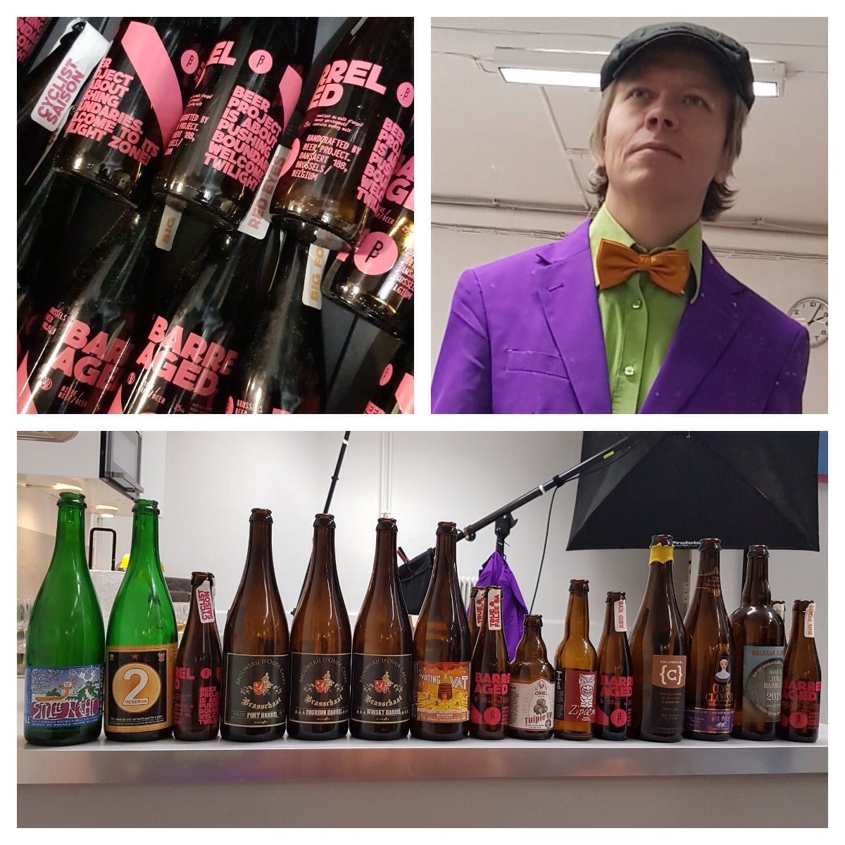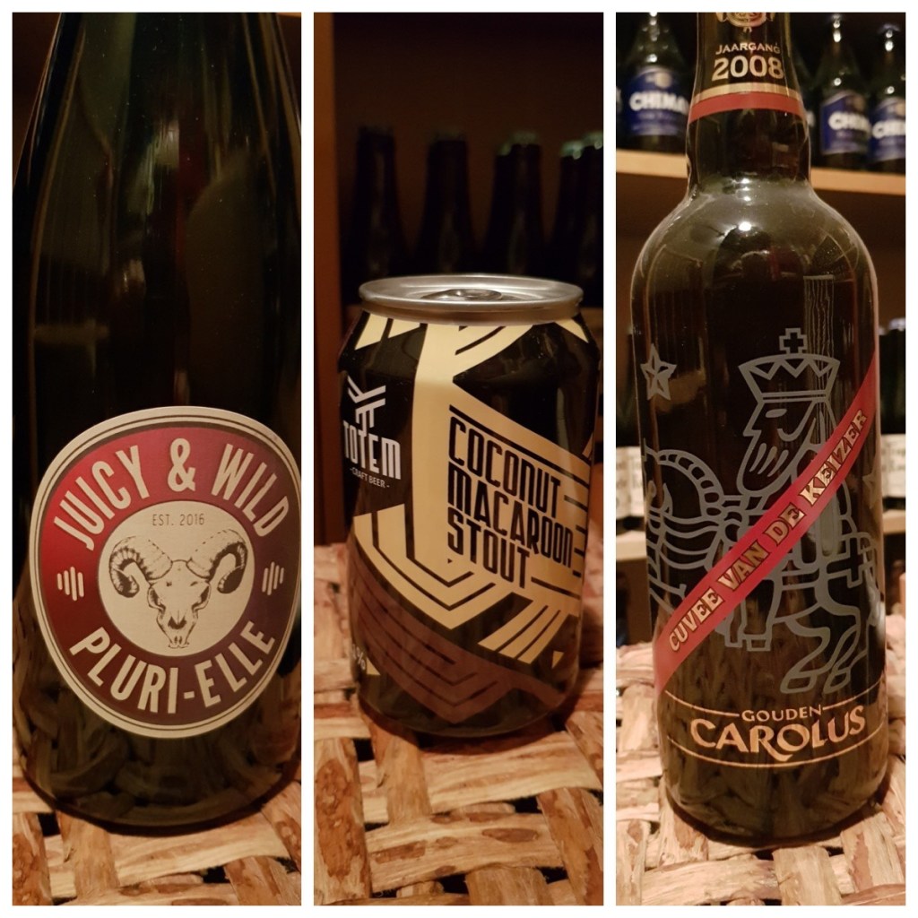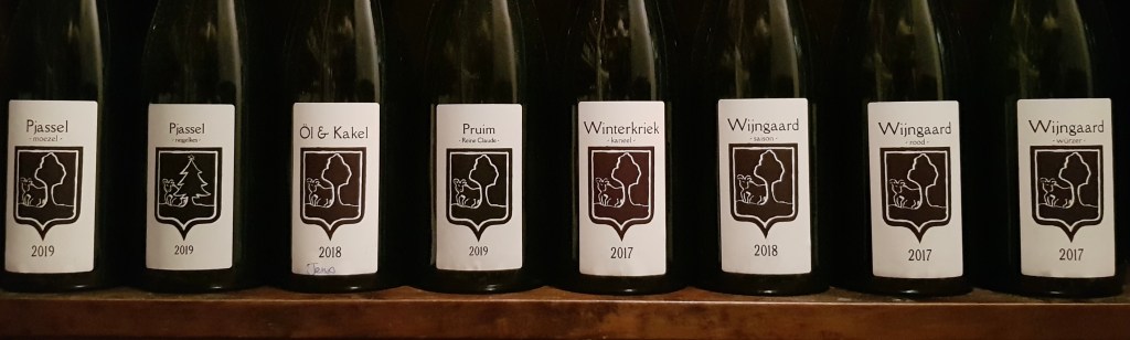”We have blended our Belgian Quad Land Van Mortagne 12.8% and our Barley Wine Pays d’Erpigny 11% and put them on a Red Wine St-Emilion, Amercian Oak barrel. The beer has been aging for 8 months now and will get some more time. We added freshly dried figs that we picked and dried ourself. ”