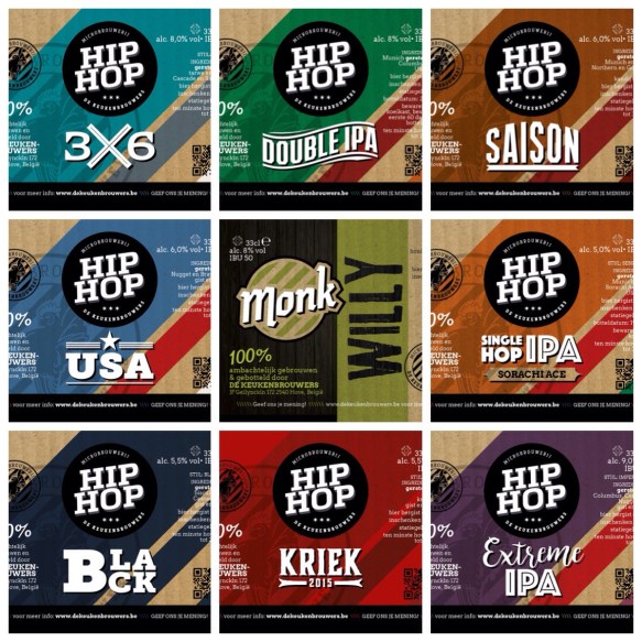 Detta är 9 av produkterna som kommer att finnas tillgängliga på torsdag och som ni ser har Keukenbrouwers både traditionella produkter men även ett gäng moderna humlebomber. Bland dem hävdar de att Hip Hop Extreme IPA är Belgiens mest humlade produkt* med hela 170 IBU eller 24 g humle/liter. Hip Hop Kriek 2015 fanns det bara 250 st flaskor av vilket gör att jag är väldigt nöjd med att ha kommit över en låda. De brygger även en brygd med namnet Hip Hop 3×6 vilket är måttet på deras bryggeri och händelsevis råkar det sammanfalla med färgen på brygden samt dess stamvörtstyrka…
