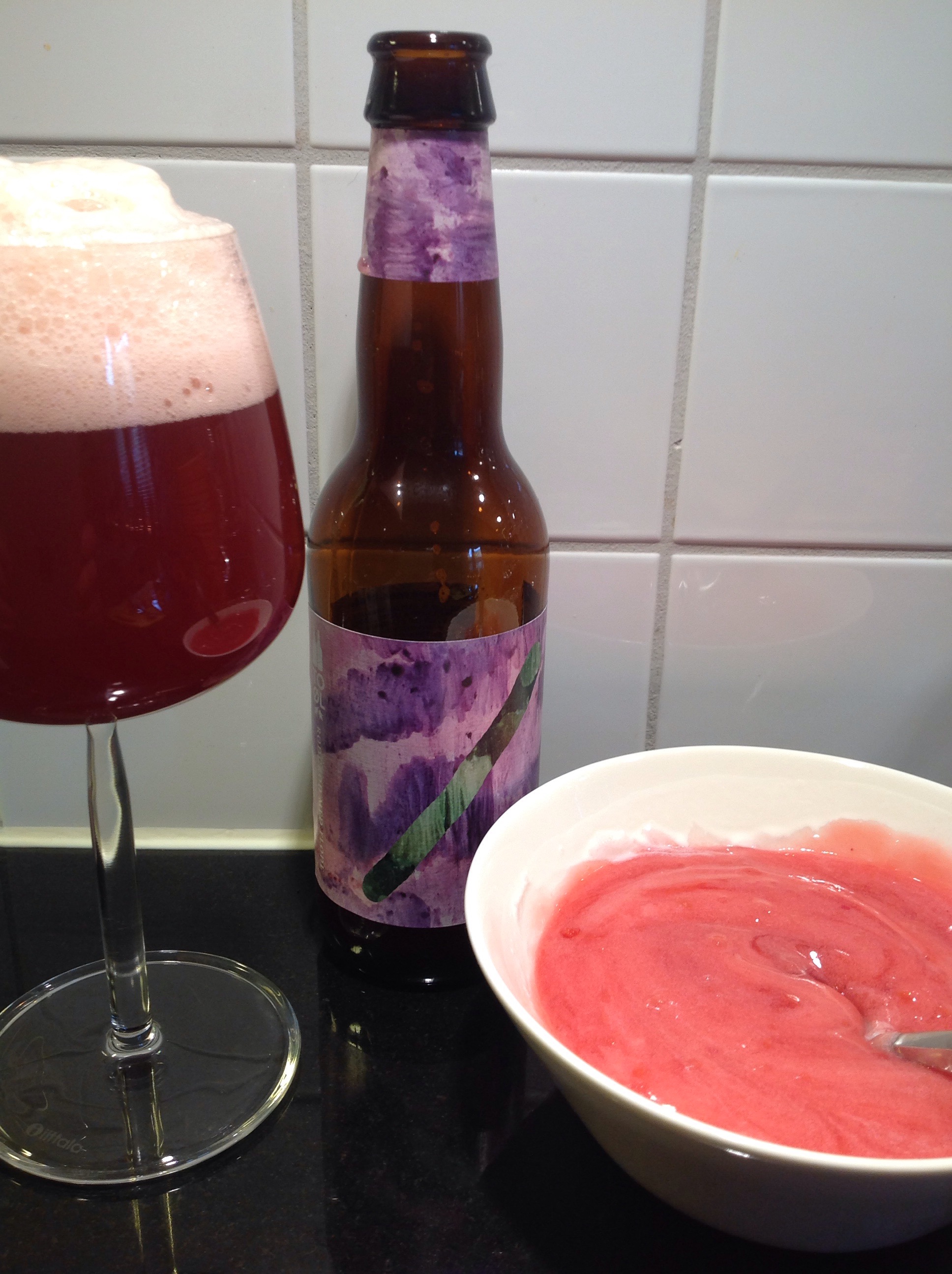 Först ut blev To Øl och deras Rødgrød med Fløde som dök in på Systembolaget förra fredagen. Denna fruktspäckade öl, vars namn betyder ‘saftkräm med grädde’ avsmakades just med det. Saftkräm är i sanningens namn inte min favorit men tillsammans var det helt ok. Dock noterade man beskan i ölen betydligt mer när man hade de söta saftkrämen bredvid.