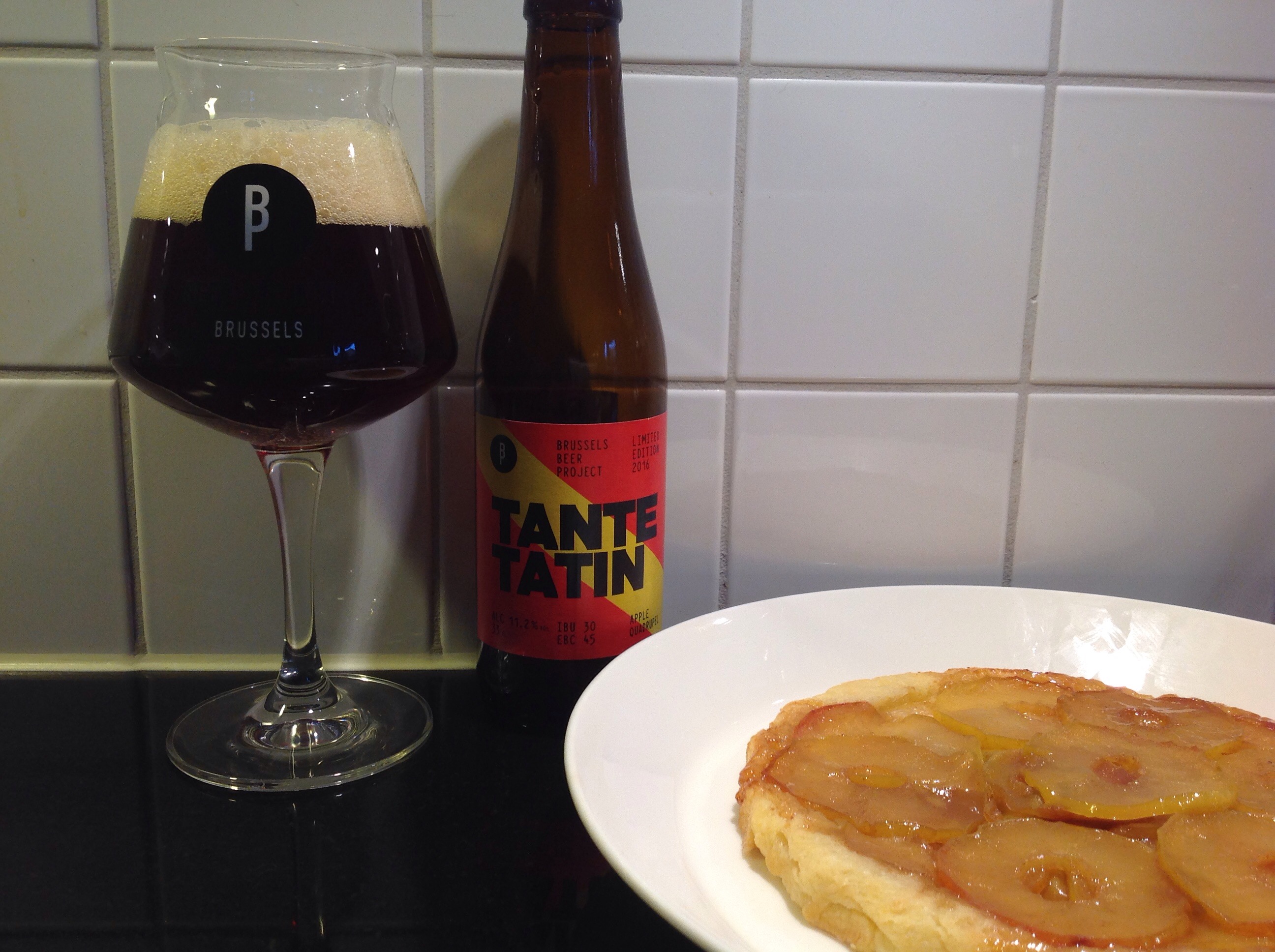 Sist ut denna fredag blev min allra första tarte tatin tillsammans med Brussels Beer Projects Tante Tatin. Kvällens höjdare! Nu ska jag erkänna att jag inte är någon dessertmänniska och tycker helt enkelt bättre om denna karamelliserade äppelefterrätt än de andra samt att den kraftfulla ölen tilltalade mig mest. Emellertid smälte dessa rätter ihop på ett behagligare sätt än de föregående. Tyvärr är Tante Tatin en av Brysselbryggeriets pop-upp-öl så det är inte säkert vi får möjlighet att testa den igen.