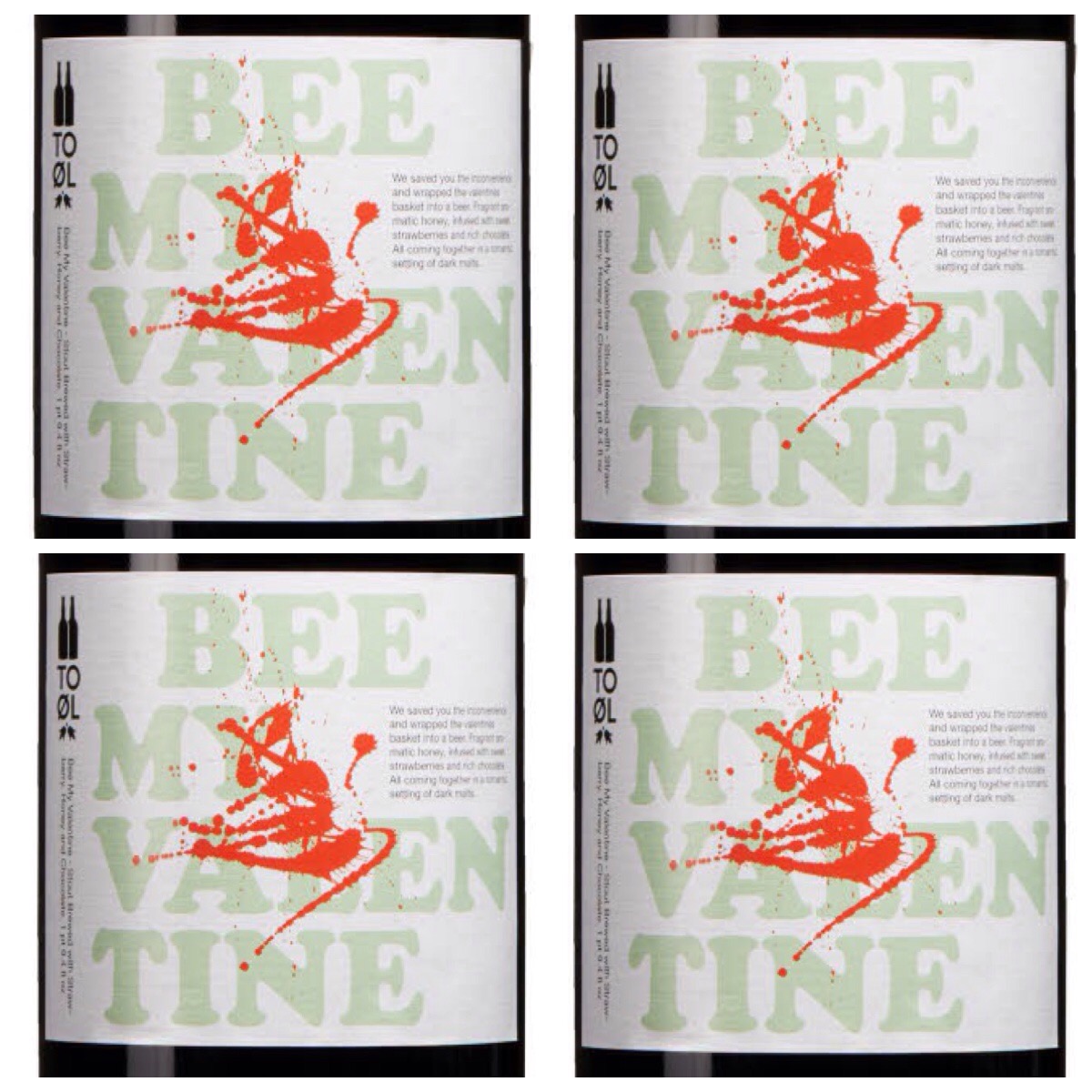 Sist ut bland ölen med belgoanknyning är To Øl och deras Bee My Valentine. En öl tänkt att ersätta alla andra gåvor på Alla-Hjärtansdag. Kul tanke och jag ser fram emot att prova denna mäktiga stout som innehåller både honung, jordgubbar och choklad. Man kan tycka vad man vill om dessa två unga danska herrar men rädda för att prova udda ingredienser är de inte…