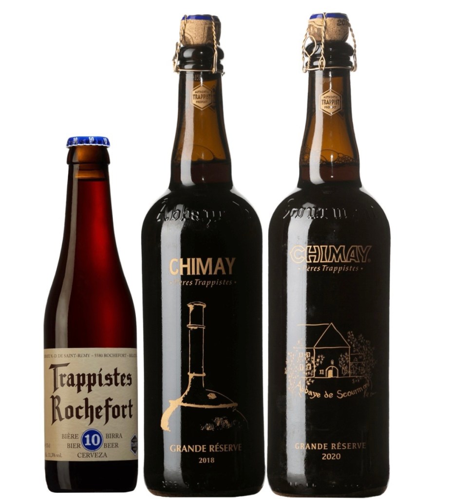 Vidare ser vi tre munkbrygder eller så kallade trappister. Två av dem känner många av er igen som Chimay Bleue vilket är en stapelvara på många Systembolag runt om i landet. Dock är dessa båda på storflaskor och då kallas den Chimay Grande Réserve samt att detta är två limiterade utgåvor som istället för den vanliga etiketten har serigraferade motiv. I övrigt skiljer sig innehållet inget från de vanliga flaskorna även om dessa är lätt lagrade eftersom de är från 2018 respektive 2020.